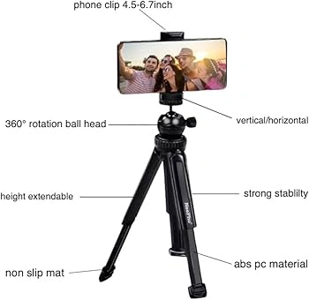 Featuring a 360° rotating ball head, it allows you to easily adjust angles for photography, video recording, or live streaming. Its lightweight ABS + PC construction ensures durability while remaining easy to carry.